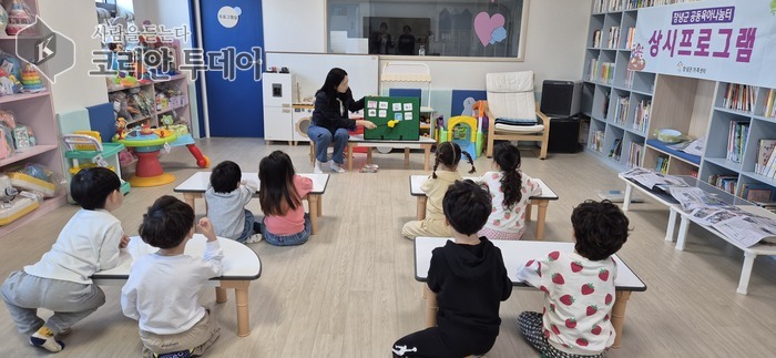 [코리안투데이] 창녕군 공동육아나눔터에서 아이들을 대상으로 놀이 프로그램을 진행하고 있는 모습  © 신성자 기자