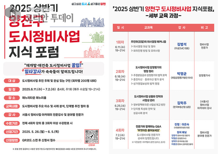 ![]() [코리안투데이] 2025 상반기 양천구 도시정비사업 지식포럼 홍보 이미지 © 변아롱 기자 |
