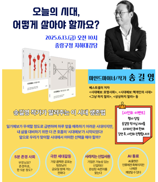 [코리안투데이] 중랑구, 송길영 작가 초청 명사특강 개최  ©이지윤 기자