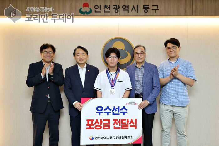 인천 동구장애인체육회(회장 김찬진)가 제19회 전국장애학생체육대회에서 우수한 성적을 거둔 지역 학생을 초대해 축하하고 격려하는 시간을 가졌다. 이번 행사에서는 은메달 2개를 획득한 현도윤(동산고) 학생과 그의 지도자가 참석해 뜻깊은 자리를 함께했다.