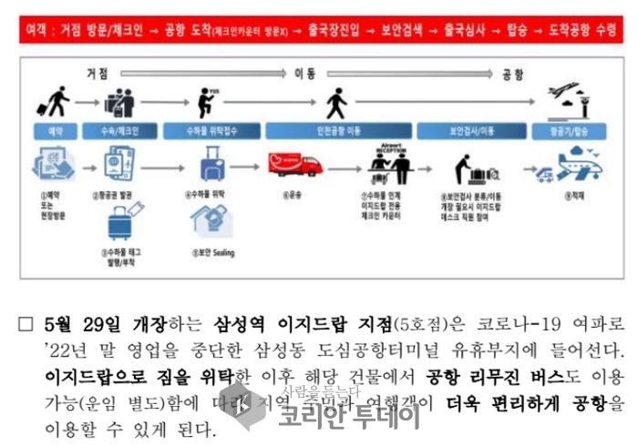 이지드랍 서비스는 이미 홍대입구, 명동, 인천 인스파이어 리조트와 파라다이스시티 호텔 등에서 운영 중이며, 이번 삼성역 지점은 다섯 번째 거점이다. 특히 삼성역 지점은 과거 코로나19 여파로 운영을 중단했던 도심공항터미널 유휴부지를 재활용해 마련된 공간으로, 도심 속 공항 서비스 인프라 확충이라는 점에서도 주목된다. 이지드랍을 통해 짐을 위탁한 후, 같은 건물에서 공항 리무진 버스를 바로 이용할 수 있는 점도 교통 편의성을 크게 높여주는 요소다.