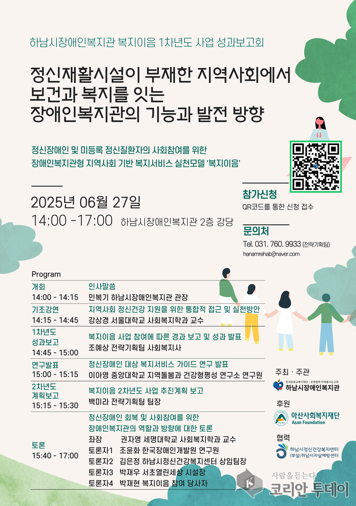 행사 참석 신청은 6월 20일까지 온라인 신청 링크(https://forms.gle/ffzKPk5X3qxyFnfi8) 또는 QR코드를 통해 가능하다. 복지 관계자, 당사자, 가족 등 약 60여 명이 참여할 예정이다.