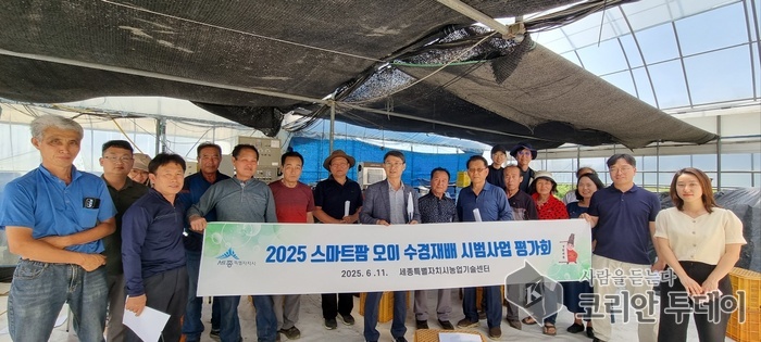 세종시가 스마트팜 기술을 활용한 오이 수경재배의 가능성을 본격적으로 실증하며 기후위기 시대의 농업 대안을 제시하고 있다. 세종시농업기술센터는 6월 11일 금남면 영대리의 오이 시설하우스에서 수경재배 시범사업 평가회를 열고, 효율적 농업모델로서 수경재배의 우수성을 점검했다.