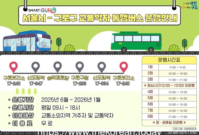 ![]() [코리안투데이] (사진) 구로구 언론팀 제공 구로구 교통약자 동행버스 이용 안내문 © 박수진 기자 |