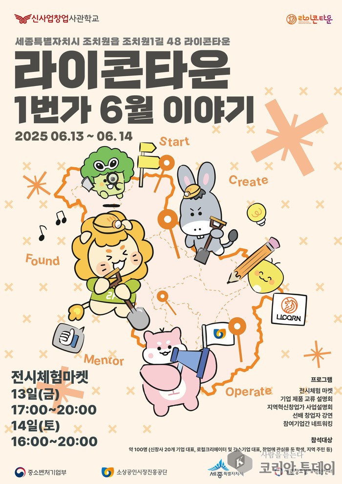 예비창업자들이 현실적인 창업을 준비하는 자리가 세종에서 열렸다. 세종시는 6월 13일부터 14일까지 라이콘타운 세종점에서 ‘1번가 6월 이야기’ 행사를 개최했다. 전국 첫 라이콘타운으로 문을 연 이곳은 실전형 창업 지원의 거점으로, 이번 행사에서는 창업자 간 교류와 시민과의 소통이 활발하게 진행됐다.