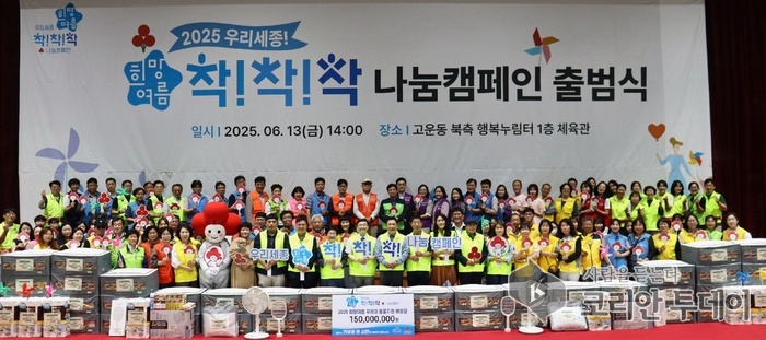 세종특별자치시가 더위에 지친 저소득층을 위한 특별한 여름 선물 마련에 나섰다. ‘2025 희망여름 착!착!착! 나눔캠페인’ 출범식이 13일 고운동 행복누림터에서 열렸다. 이 캠페인은 시민 누구나 참여할 수 있는 생활 속 기부 운동으로, 오는 7월 15일까지 계속된다.