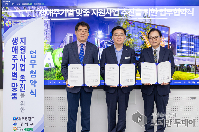 서울 강서구(구청장 진교훈)가 지역 내 취약계층을 위한 생애주기별 맞춤형 복지 실현을 위해 민간단체와 손을 맞잡았다. 6월 17일 화요일, 강서구청에서 열린 ‘취약계층 생애주기별 맞춤 지원을 위한 업무협약’ 체결식에는 진교훈 강서구청장과 김정해 (사)오픈월드 이사장, 문진환 (사)더함께새희망 이사장이 참석해 각 기관의 협력체계를 공고히 다졌다.