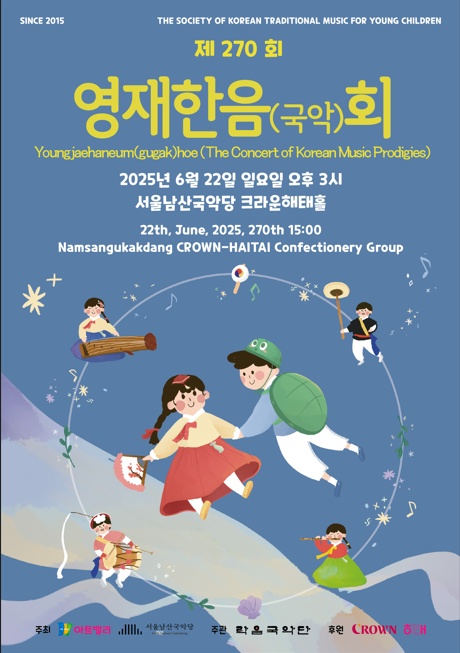 한국 전통음악의 미래를 책임질 어린이 국악 영재들이 모이는 특별한 무대, 제270회 영재한음(국악)회가 오는 2025년 6월 22일 일요일 오후 3시, 서울 남산국악당 크라운해태홀에서 열린다.