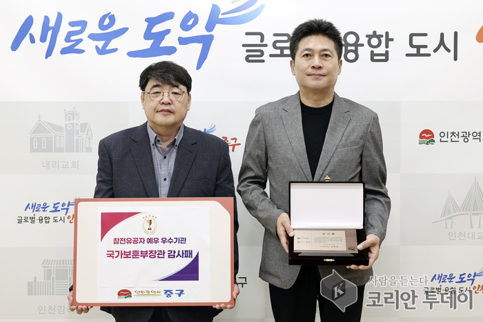 [코리안투데이] 인천 중구, 보훈부 ‘예우 우수기관’ 선정  © 김미희 기자