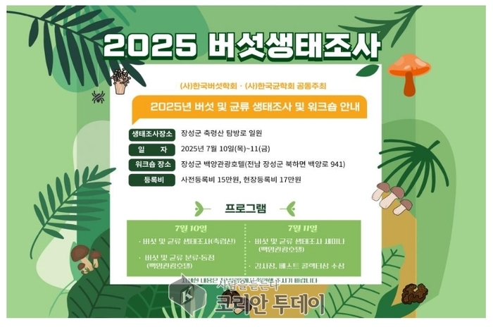 자연 속에서 살아 숨 쉬는 생태계를 직접 들여다볼 수 있는 특별한 기회가 찾아온다. 국립원예특작과학원이 주관하고 한국균학회와 한국버섯학회가 주최하는 ‘2025년 버섯·균류 생태조사’가 오는 7월 10일부터 11일까지 이틀간 전라남도 장성군 축령산 탐방로 일대에서 열린다. 올해 생태조사는 단순한 학술행사가 아니라, 일반 시민도 참여해 생물다양성과 균류 생태계의 중요성을 직접 체감할 수 있는 살아있는 교육의 장으로 마련된다.