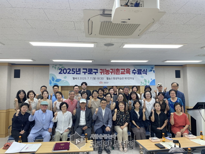 구로구(구청장 장인홍)가 7일 구청 신관 평생학습관에서 ‘2025년 귀농·귀촌교육’ 수료식을 개최했다. 구는 귀농·귀촌을 희망하는 구민을 대상으로 안정적으로 농촌에 정착할 수 있도록 귀농·귀촌에 필요한 정부 정책, 지원사업 등 각종 정보와 기초 소양을 기를 수 있는 다양한 교육 프로그램을 운영했다.