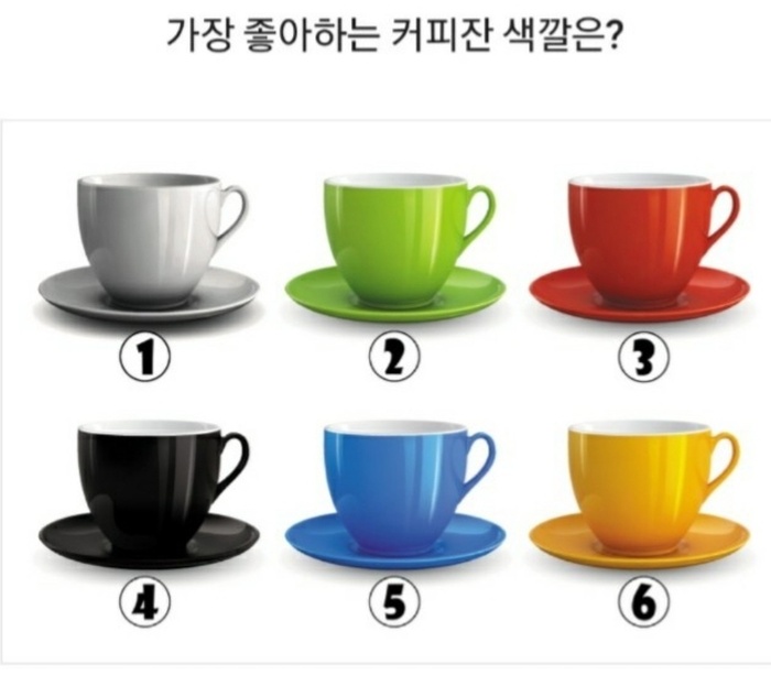 이 커피잔 색깔 테스트는 각 색상을 선택한 사람의 연애 성향을 재미있게 해석한 심리 유형 테스트입니다. 아래에 각 색상에 대한 설명을 정리해 드립니다: