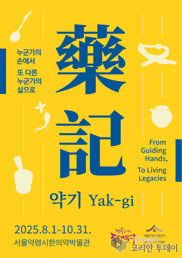 서울 동대문구가 운영하는 서울한방진흥센터(서울약령시한의약박물관)는 8월 1일부터 10월 31일까지 ‘특별전 《약기(藥記) – 누군가의 손에서 또 다른 누군가의 삶으로》를 개최한다. 이번 전시는 치유의 역사를 기록하고 이름 없이 유산을 지켜온 ‘숨은 지킴이’들에게 헌정하는 의미를 담고 있다. ‘약기(藥記)’는 ‘약(藥)’과 ‘기록할 기(記)’를 합친 말로, 한의학의 소중한 유산을 되새기는 기회를 제공한다.