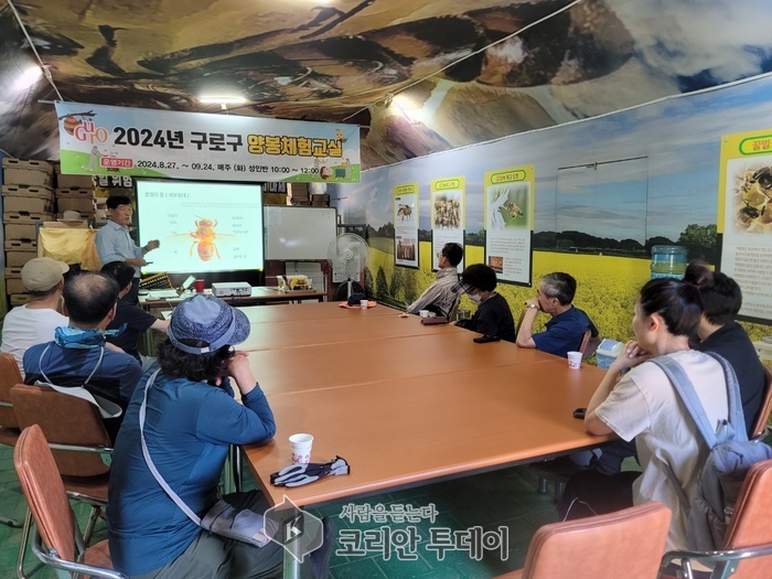 ![]() [코리안투데이] (사진) 구로구 양봉체험교실에서 참가자들이 꿀벌의 생태와 양봉 과정을 학습하고 있다. © 박수진 기자 |