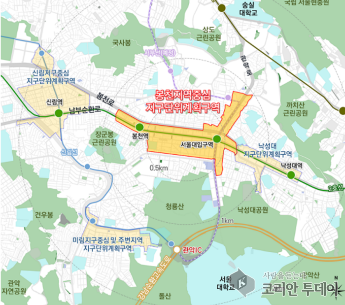 ![]() [코리안투데이] 관악구 지구단위계획 재정비 봉천지역중심 위치도 © 관악구청 제공 |