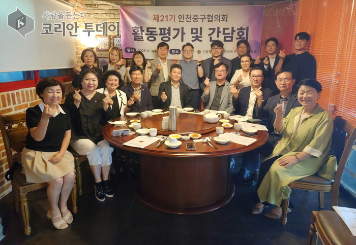 (인천=코리안투데이 인천남부) 민주평화통일자문회의 인천중구협의회(회장 전승호)는 지난 3일 낮 12시 문차이나에서 ‘통일활동평가 및 간담회’를 열고 제21기 활동을 돌아보며 향후 발전 방향을 모색했다. 이번 행사에는 김정헌 구청장을 비롯해 자문위원과 관계 공무원 등 35명이 참석해 지난 2년간의 성과를 함께 공유하고 평화와 통일의 의미를 되새겼다.