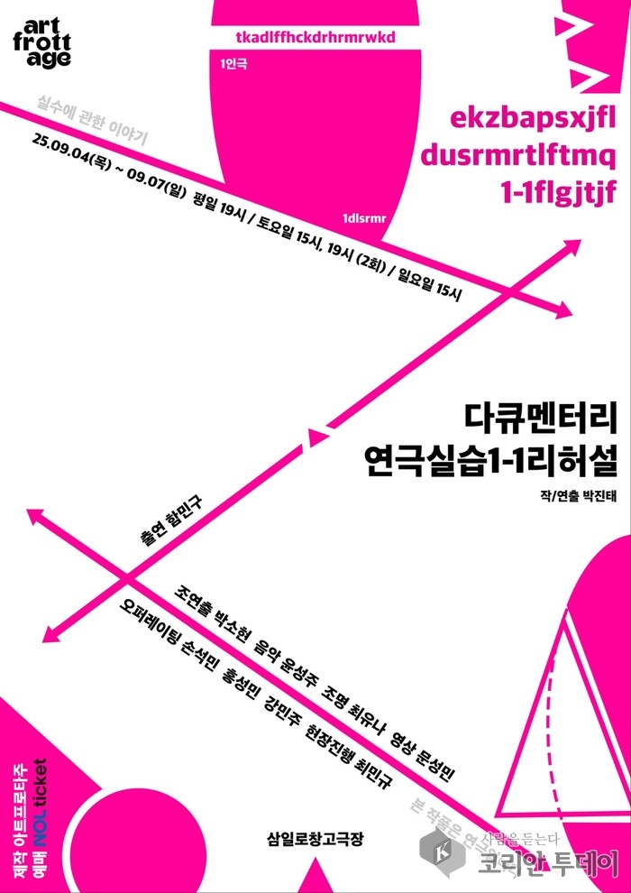 실수를 주제로 한 독특한 다큐멘터리 형식의 연극 연극실습1-1리허설이 오는 9월 4일부터 7일까지 서울 삼일로창고극장에서 관객들과 만난다. 이 연극은 “우리는 한 번도 실수하지 않았다”는 도발적인 선언을 전면에 내세우며, 실수의 본질과 그것이 우리 삶에 미치는 영향을 해부하듯 풀어낸다.