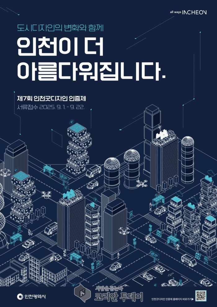 인천광역시가 도시공간의 품격을 높이고 시민이 체감할 수 있는 공공디자인 확산을 위해 ‘제7회 인천 굿디자인 인증제’에 참여할 우수디자인 공공시설물 개발 업체를 모집한다. 이번 모집은 오는 9월 1일부터 22일까지 진행되며, 도시 공간에 설치되는 공공시설물 가운데 창의적이고 품질이 우수한 디자인을 발굴·보급하는 데 의의가 있다.