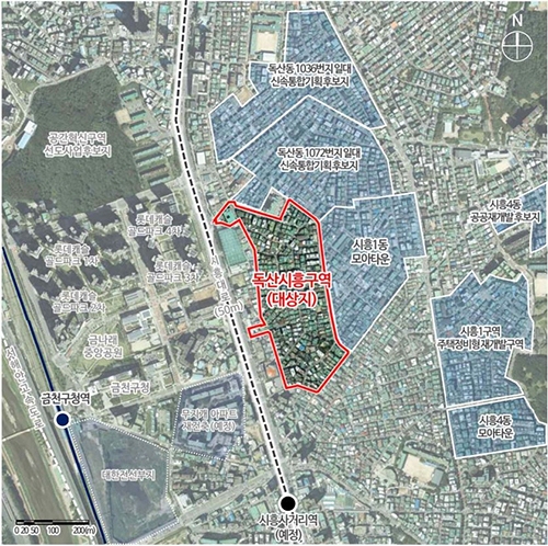 이는 지난 1월 정비구역 지정 이후 약 7개월 만의 성과로, 서울시 신속통합기획 2차에 선정된 25개 사업지 중 두 번째로 사업시행자가 지정된 사례다.기존 조합방식의 정비사업은 정비구역 지정 후 조합 설립까지 평균 2년 이상이 소요되는 반면, 독산시흥구역은 신탁방식을 채택해 사업 추진 속도를 크게 앞당겼다.해당 구역은 2022년 12월 서울시 신속통합기획 2차 후보지로 선정된 노후 저층 주거지로, 면적 약 8만8천㎡에 최고 45층, 16개동, 총 2,072세대 규모의 아파트가 들어설 예정이다. 특히 1호선 금천구청역과 신안산선 시흥사거리역(예정)을 동시에 이용할 수 있는 교통 요지에 위치해 있으며, 인근 독산동 1036번지 및 1072번지 일대의 재개발과 모아타운 사업도 함께 추진되고 있어 미니신도시급 주거단지로의 발전이 기대된다.