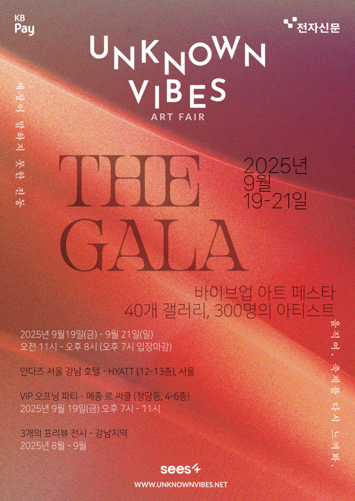 국내 최대 규모의 바이브업 아트 페스타, Unknown Vibes 아트페어가 오는 2025년 9월 19일부터 21일까지 안다즈 서울 강남 호텔에서 열린다.