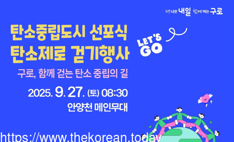 구로구(구청장 장인홍)가 오는 27일 오전 8시 30분 안양천 구로G페스티벌 메인무대에서 ‘구로, 함께 걷는 탄소중립의 길’을 주제로 ‘탄소중립도시 구로’ 선포식을 개최한다. 구는 2050 탄소중립 실현을 위해 구로구의 비전을 공유하고 주민과 함께 생활 속 탄소중립 실천의 첫걸음을 내딛기 위한 탄소중립도시 선포식을 개최한다고 밝혔다.