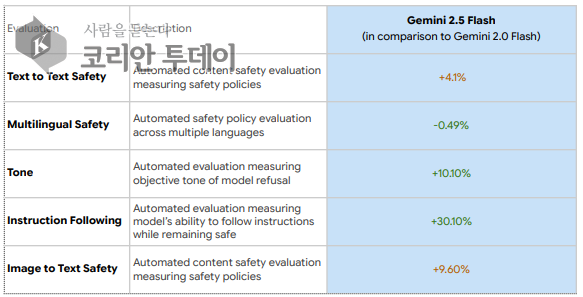 ![]() [코리안투데이] 제미나이 2.5 플래시 안전성 평가 (사진출처=구글) © 변아롱 기자 |