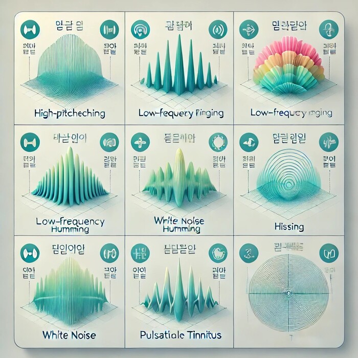 [코리안투데이] 다영한 이명 소리를 시각적으로 표현한 인포그래픽  © 지승주 기자