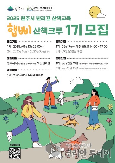 ![]() [ 코리안투데이 ] 2025년 원주시, 반려견 산책 교육 참가자 모집 © 이선영 기자 |