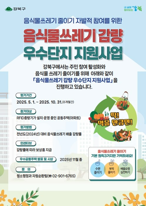 강북구, 음식물쓰레기 감량 나선다…우수 공동주택에 인센티브 지급