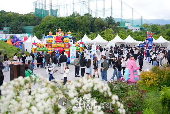 행사장 곳곳에는 어린이 바이킹, 꼬마 기차, 상상 드림캐슬, 도라에몽 바운스등 인기 에어바운스 놀이기구가 설치되어 가족 단위 방문객들의 대기 줄이 길게 이어졌고, 체험 부스에서는 전통놀이 체험, 안전 체험, 창의 공작, 그림 그리기, 페이스페인팅등 다양한 콘텐츠가 운영되어 아이들의 오감을 만족시켰다.