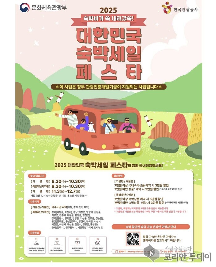 ![]() [코리안투데이] 2025년 하반기 숙박세일페스타 포스터 © 송정숙 기자 |