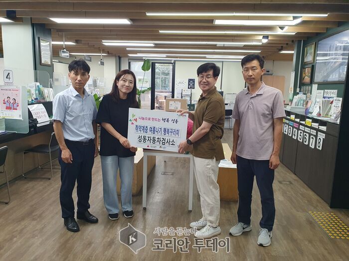 서울 성동구(구청장 정원오) 송정동이 성동자동차검사소(소장 최성복)와 손잡고 지역 내 한부모가정 아동들에게 ‘여름나기 행복꾸러미’를 전달했다.