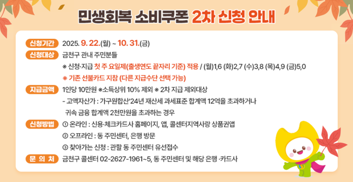 정부가 민생 안정을 위해 추진하는 ‘민생회복 소비쿠폰’이 2차 지급에 들어갔다. 행정안전부에 따르면 이번 2차 지급은 소득 하위 90% 국민을 대상으로 1인당 10만 원씩 지원된다. …